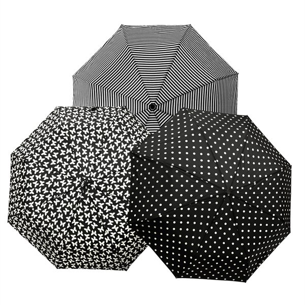 Guarda-chuva dobrável Falconetti®, 3 seções, haste e estrutura de metal, alça de plástico preto, com caixa própria, várias estampas, disponível apenas em embalagens sortidas.