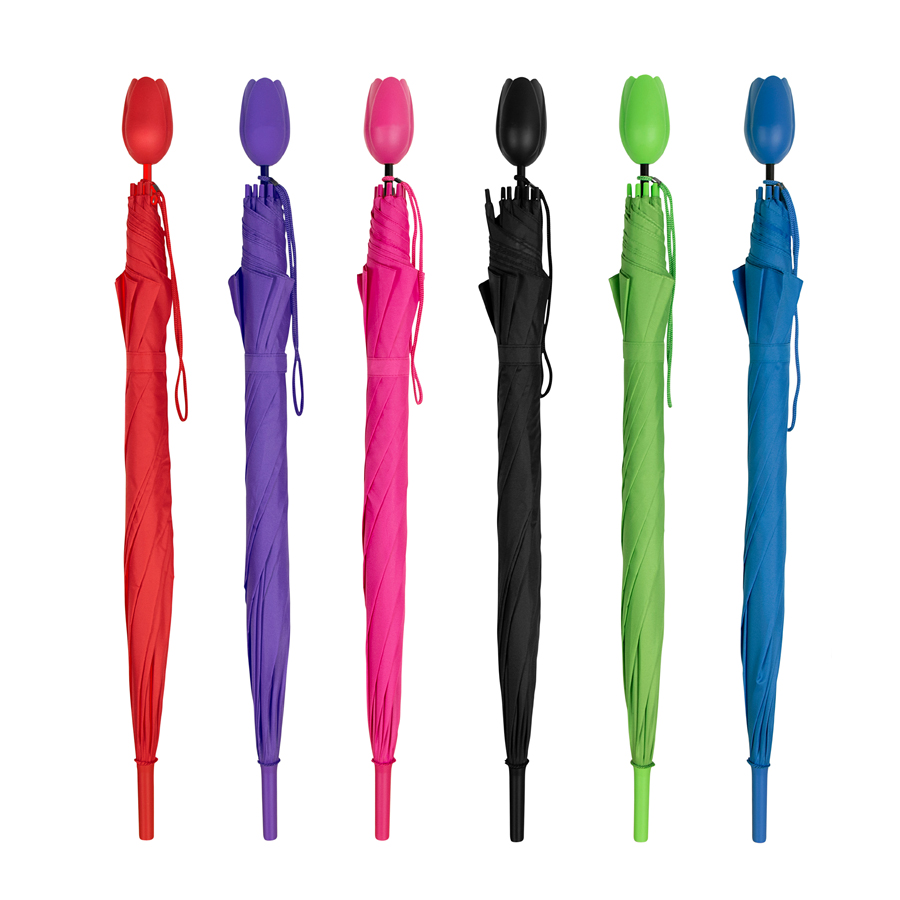 Guarda-chuva TLP-8-ASS Falconetti®, com cabo em tulipa modelo registrado, automático, haste e moldura em preto, cabo em tulipa com acabamento em borracha na cor correspondente, embalagem sortida.