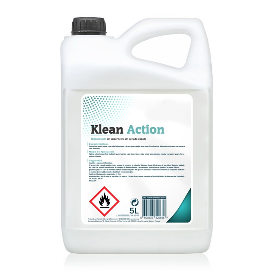 Klean Action é um detergente higienizante pronto a usar, bastante eficaz na limpeza e higienização de uma vasta gama de superfícies laváveis.